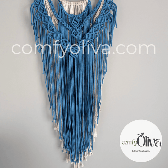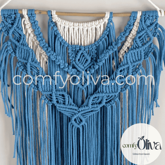 Hand-knotted premium cotton cord in blue and soft natural tones